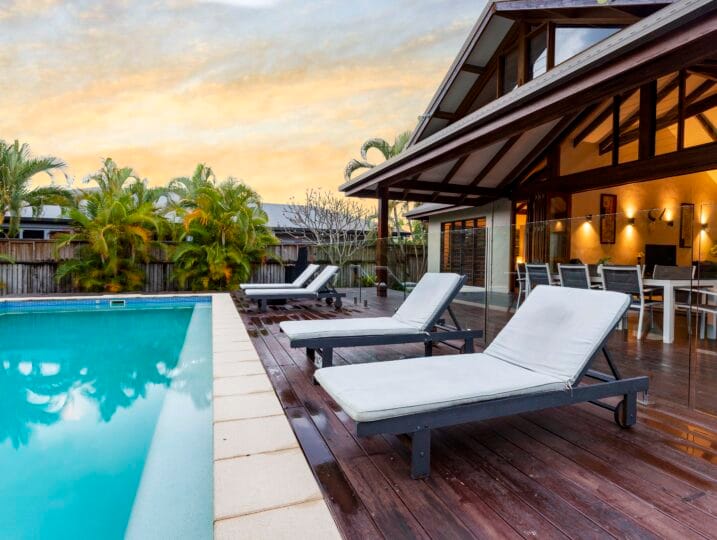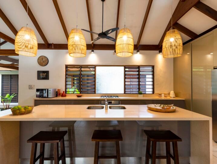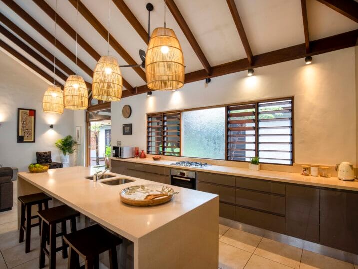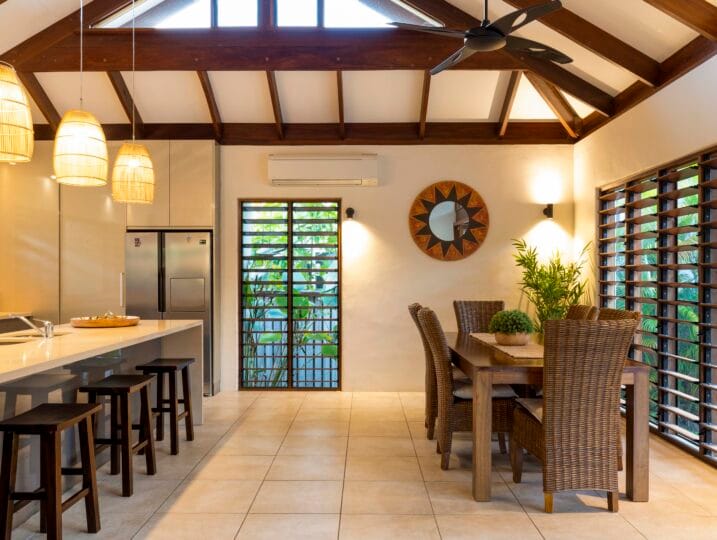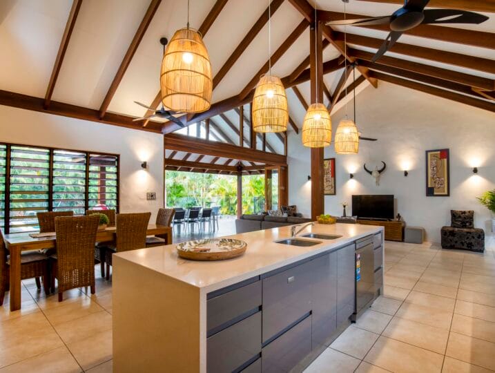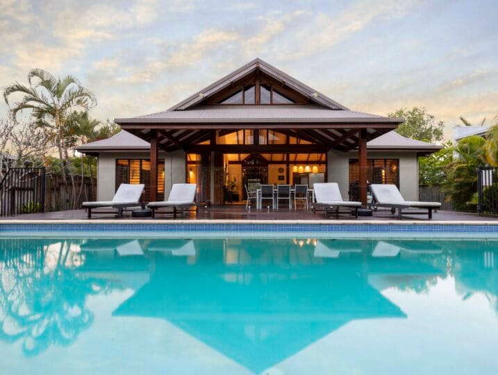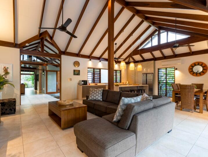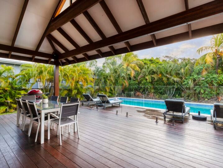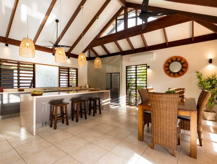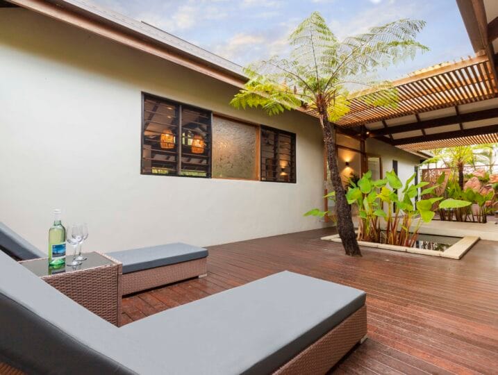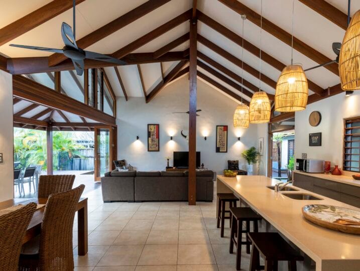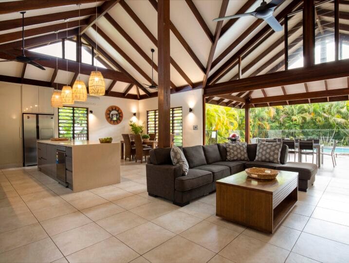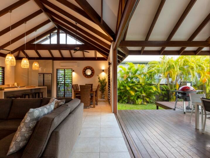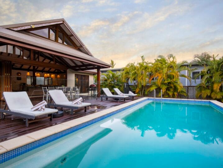 Indah (“Beautiful”) is a Balinese inspired home in a stunning tropical surround. A beautiful, generous sized space in a peaceful setting located in Port Douglas.